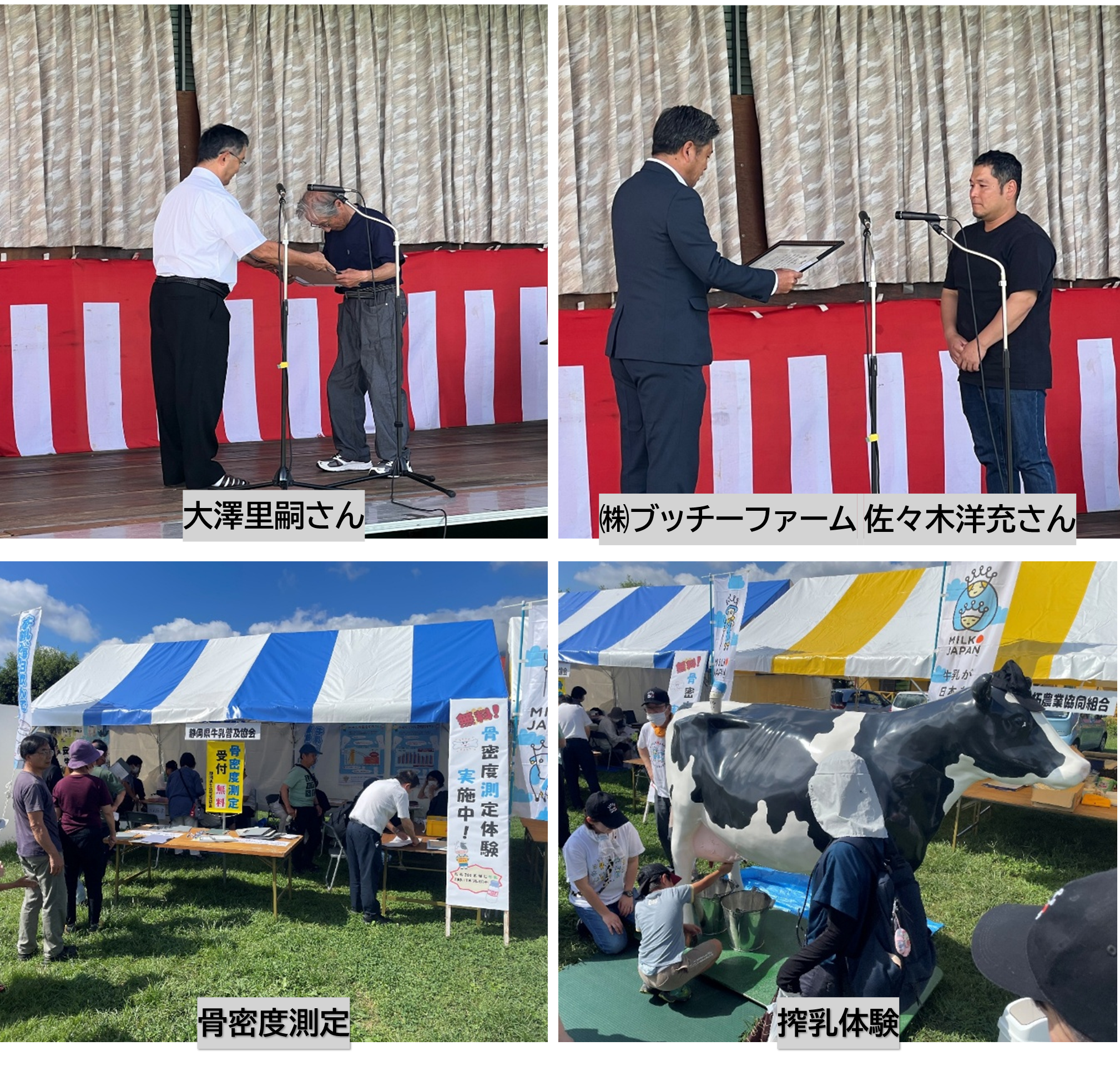 農協の搾乳体験コーナーでは、模擬搾乳牛を使った体験に多くの方が挑戦。ミルクが出る瞬間には歓声が上がり、会場には笑顔が広がりました。